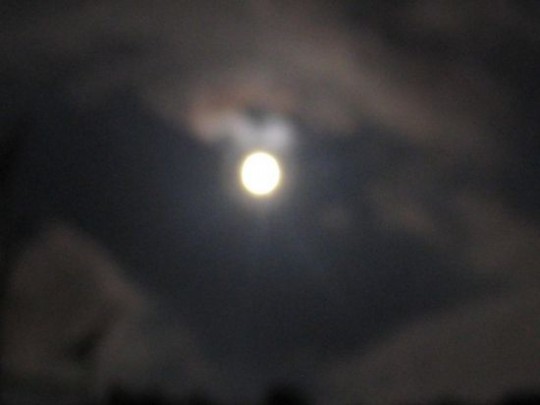 수내동의 새벽을 밝히는 여명, 산위에 한가로이 뜬 구름, 구름 사이를 누비는 보름달입니다.