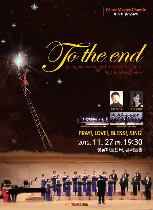제가 몸 담고 있는 이듀스메스터코럴 합창단 2012년 정기공연이 성남아트센터에서 있었습니다.저희 합창단을 비롯해 많은 분들께서 응원을 해주셔서 엄청난 힘과 용기를 얻어성황리에 잘마쳤습니다. 감사합니다.