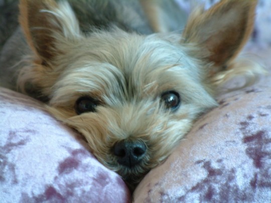 어제 사진 올린데 이어 짱구(요크사 잡종)사진도 올려 보라는 요청에 이어 벌벌 떨고 있는 짱구 사진 올립니다. 7살 인데 자기 보다 덩치가 3배나 큰 한살 배기 곤지 (코카스파니엘) 하고 어제 대차게 한판 붙어 얼굴에 상처를 내더니 보복이 두려워 소파에서 숨어 지냅니다.