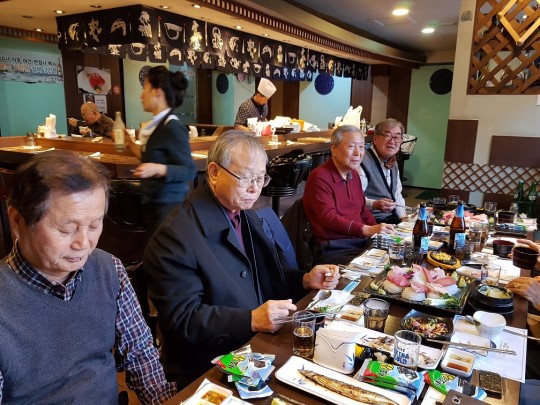 2단 단원 6명은 교당 접견실에서 단회를 가진 뒤 1단의 송상원 박사와 함께 김상호(호산) 교감, 윤혜원 주임교무, 정주현 부교무를 모시고 수내역 부근 <미도참치>에서 식사를 함께 하며 즐거운 대화로 새 교무진과 단원들이 얼굴을 익히는 기회를 가졌습니다.
