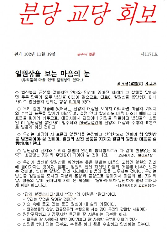 원기 102년 11월 19일 제 1171호