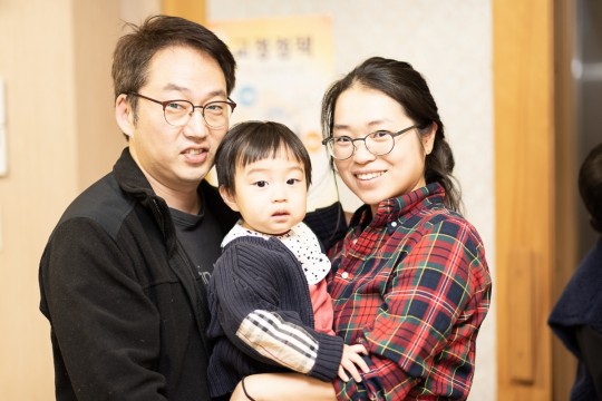 분당교당에서 소리소문없이 열심히 공부하는 박광원, 장신해 부부와 아들 사진입니다.