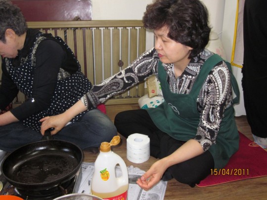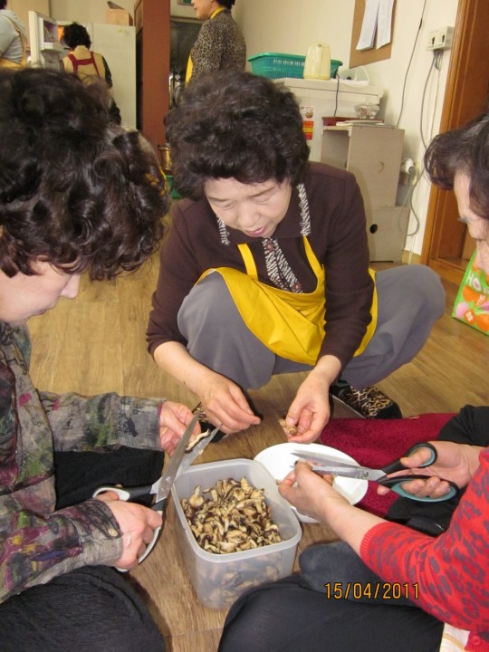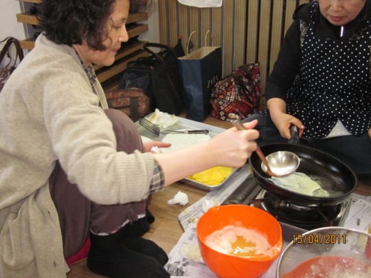 다음날 있을 바자회를 맞아, 음식을 준비하시는 봉공회분들