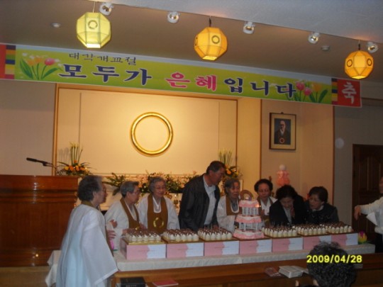 일원상 케잌 공양으로 더욱 풍성한 생일잔치가 되었습니다.