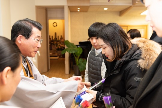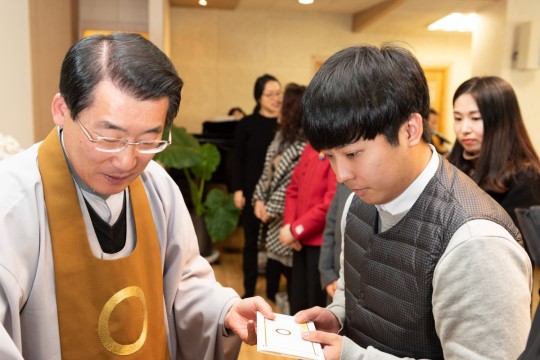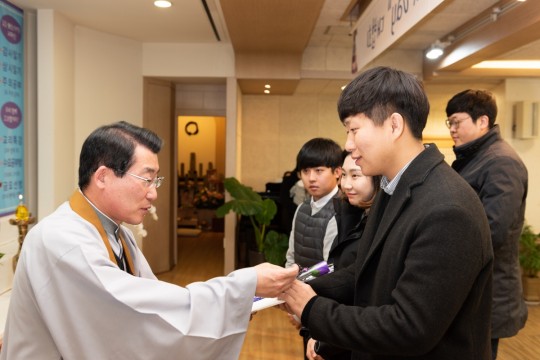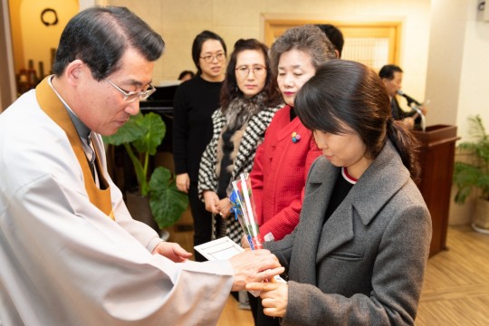 원기 103년 12월 2일 새로 입교하신 교도님을 위한 득도식이 대각전에서 거행 되었습니다.